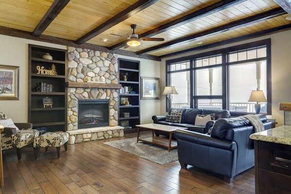 When winter arrives, enjoy true ski-in/ski-out access with no walking required—making it easy for everyone, from little ones to seasoned skiers. Spend your days on the slopes, then gather by the fireplace with hot chocolate while watching skiers glide past. The hot tub is the perfect place to unwind after a day in the snow.