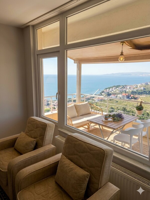 Grâce à son emplacement, qui s'adapte à la structure naturelle de Karakum, notre appartement offre une vue imprenable et enchanteresse sur la mer depuis laquelle il se trouve. Le grand balcon et le salon spacieux offrent un salon privé où vous pourrez profiter de la vue à tout moment de la journée.