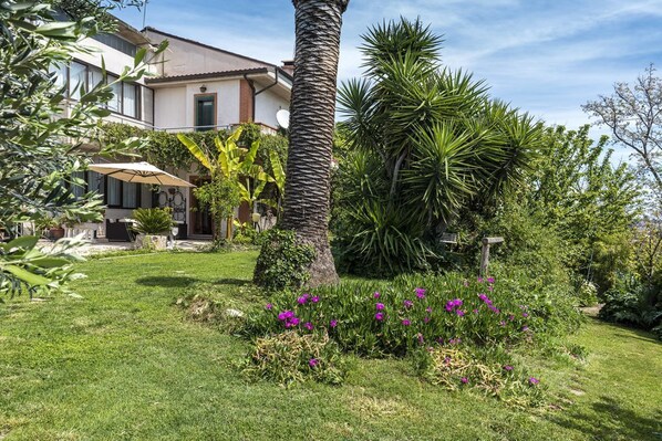 Description: Terraced house with large garden and sea view.
