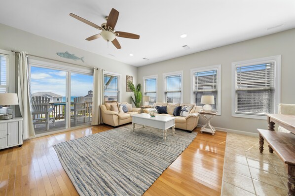 Welcome to Sunshine Beach Oasis, this 4 bed 3.5 bath townhome located in the heart of N Topsail Island. Here you will enjoy equal distance to all things Surf City and all things Sneads Ferry. Private beach access is right across the street, literally steps away. Elevator goes to all four floors, ground to third floor. Six balconies with sound and ocean views to enjoy. From the third floor of this beautiful home, you will be surrounded by amazing views and a welcoming experience and at home feel in a nicely updated and decorated space. There are amenities and small touches throughout to ensure you have a comfortable stay. The large family room has breathtaking views and incredible natural light with plenty of seating for watching movies on the large screen TV and making family memories. The kitchen is fully stocked and large enough to make full meals or quick beach snacks. There is a large table for family meals or puzzles and game time for the inside days. For more time outside, you can relax with a cup or coffee and watch the sunrise or a cocktail and watch the sunset on one of the 6 balconies with seating. There is also a deck with seating and a large outdoor shower. Ready for some down time? There are 5 smart TV’s as well as many games, puzzles and books for some awesome family time and competition! When the day is done, you can head off to the four comfortable bedrooms. ◆Living Room◆ This space will welcome you in with comfortable couches and chairs and plenty of space to relax and take in the views of the ocean and the sound. You can make memories with family and friends watching movies on the large smart TV or playing games together. ✓ Smart Television ✓ Coffee Tables / Ample Lighting ✓ Tons of natural light and deck seating directly off the living room ✓ Comfortable Seating ◆Kitchen/Dining◆ The fully equipped kitchen is large, fully stocked, and easy to use. You have everything you need to make full meals or quick beach snacks. There is ample counter space with bar seating, so you have an open space leading to the family room and dining area. The kitchen is fully stocked with appliances and utensils for ease of use! The dining area has a large table, but there is additional seating in the kitchen at a high-top table as well as bar seating and seating at the kitchen island. ✓ Modern Stainless-Steel Appliances ✓ Microwave ✓ Stove/Oven ✓ Refrigerator/Freezer with Ice Maker ✓ Keurig Coffee Maker ✓ Drip Coffee Maker ✓ Crock Pot/Blender/Mixer ✓ Large assortment of Pans for cooking and baking ✓ Glasses and dishes to accommodate all guests ◆Sleeping Arrangements◆ There are four bedrooms that are all well equipped with high quality linens and bedding and comfortable mattresses to ensure a good night's rest after enjoying all that the beauty and magic that Topsail Island has to offer. ◆◆Master Bedroom: ✓ King Bed with 4 pillows and all linens provided ✓ Large Smart TV ✓ Dresser and Closet with hangers for clothing storage ✓ Night tables with lamps, alarm clock and added electrical outlets and charging stations on both sides of the bed ✓ Ensuite bathroom ✓ Shampoo/Conditioner/Body Wash dispenser in shower ✓ Towels/hand towels/wash cloths and makeup towels all provided ✓ Hair Dryer and Makeup Mirror ✓ Balcony with chairs and rope swing with views of the Ocean ◆◆Queen Bedroom: ✓ Queen bedroom with 4 pillows and all linens provided ✓ Smart TV ✓ Closet with hangers and armoire for clothing storage ✓ Ensuite bathroom ✓ Shampoo/Conditioner/Body Wash dispenser in shower ✓ Towels/hand towels/wash cloths and makeup towels all provided ✓ Hair Dryer ✓ Balcony with chairs with views of the Sound ◆◆King Bedroom on First Floor: ✓ King Bed with 4 pillows and all linens provided ✓ Large Smart TV ✓ Dresser and closet with hangers for clothing storage ✓ Night tables with lamps, alarm clock and added electrical outlets and charging stations on both sides of the bed ✓ Ensuite bathroom (half bath connecting to full bath) with tub/shower ✓ Shampoo/Conditioner/Body Wash dispenser in shower ✓ Towels/hand towels/wash cloths and makeup towels all provided ✓ Hair Dryer ✓ Balcony with chairs with views of the Ocean ◆◆Bunk Room Bedroom on Lower Floor: ✓ Twin over Full bunkbed with all pillows and all linens provided ✓ Smart TV ✓ Closet with hangers and dresser for clothing storage ✓ Balcony with chairs with views of the Sound ◆◆Shared Full Bath on Lower Floor: ✓ Tub/Shower Combo ✓ Joint bathroom accessible through hall entry as well as through half bath ensuite from king room ✓ Shampoo/Conditioner/Body Wash dispenser in shower ✓ Towels/hand towels/wash cloths and makeup towels all provided ✓ Hair Dryer ◆Outdoor Areas◆ The views are just breathtaking, and you can enjoy the magnificent colors of the sunrise and sunset from the many decks accessible from each room. There is a nice deck with a seating area with sound views. There is a large outdoor shower to rinse off after a day at the beach. There is also an assortment of beach chairs and other beach gear available (varies at times what all is available as we try to keep things updated and remove anything too worn or rusted). Access is super easy! No need to keep up with keys, you will have your own unique access code good for the duration of your stay. There is parking for 4 cars, there is no parking available on the street as you will get ticketed. There is a Ring Doorbell for safety, but no cameras inside the property for your privacy. Your host or Co- host are always available just message us on the app. Jim our Co-host lives close by and is available. Must be at least 25 years of age to reserve and there must be a guest of that age staying during the entire length of the stay. ✓ This is a NON SMOKING home. ✓ Dog friendly with $150 fee. Please let us know the type of dog and size. Two dog limit, 40lb max each. Thank you. ◆◆Ameni