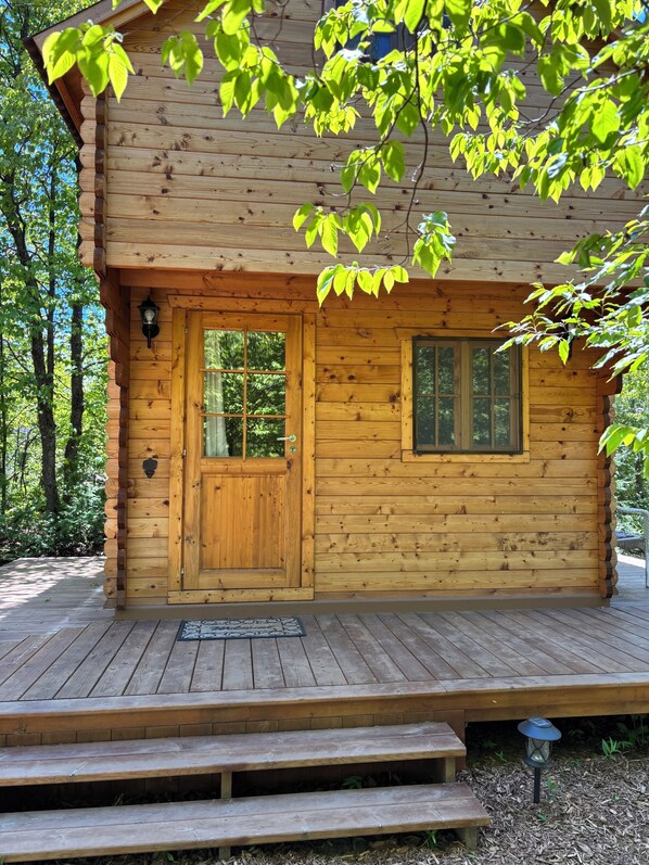 We have just under an acre of property with a beautiful tiny cabin on it in a nicely treed area of the property. Watch beautiful sunsets on the wrap around deck. Enjoy roasting some s’mores around a campfire. Hit the hiking trails. Try some wind surfing. Head to the beach. Very quite a peaceful life here if you just want to escape the city for a couple days. 13min to Sauble Beach. 13 min to Wiarton. 10min to Red Bay. 10min walk to lake.