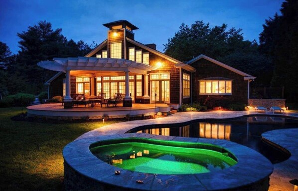 - Hot tub overlooking the creek for year-round relaxation