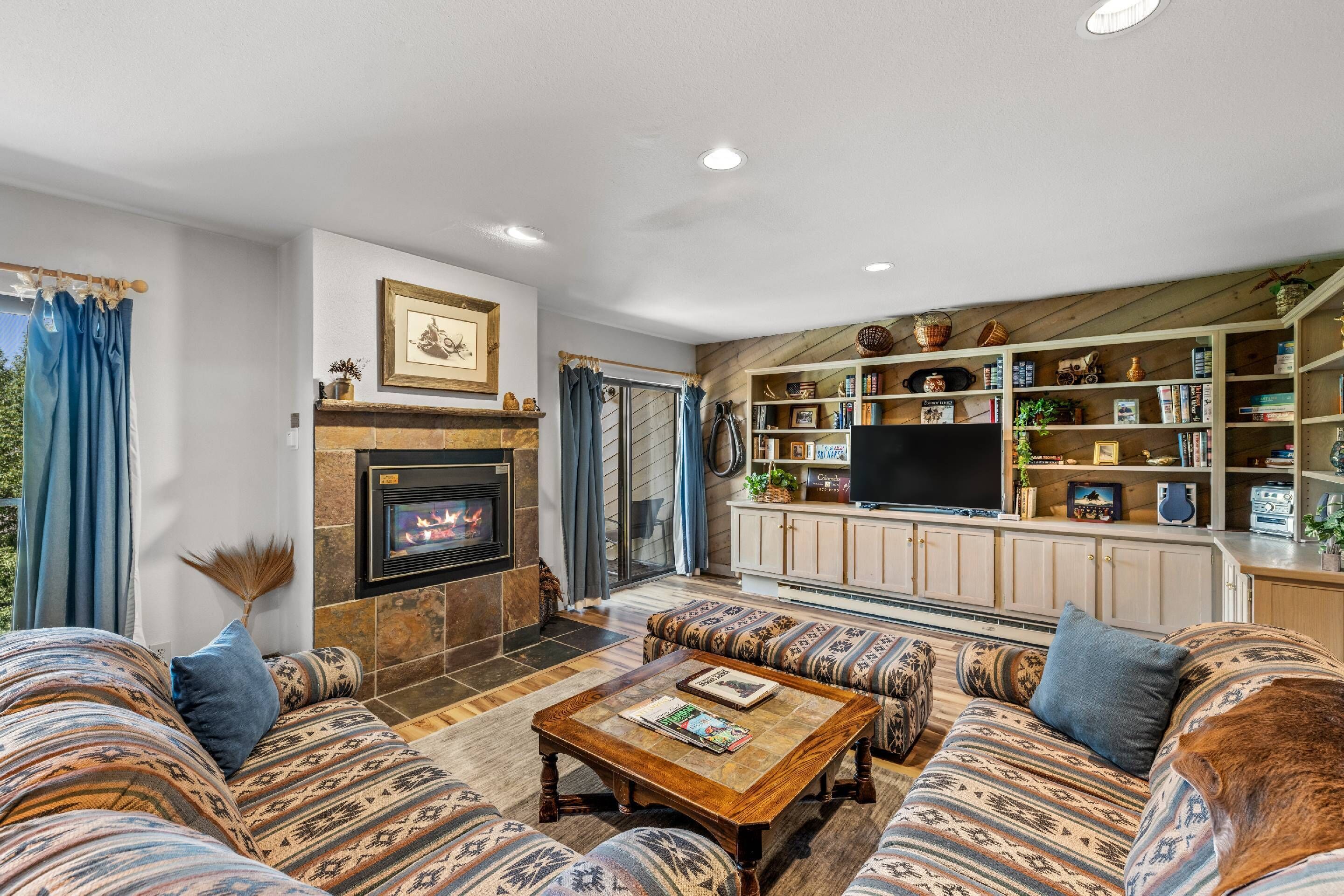 La Casa 19 is a multi-level condo, spread over 1,900 square feet, providing plenty of room for your large family or group of friends. This vacation rental has a well-equipped kitchen with a breakfast bar, a dining table for six, a desk and chair if you need to get some work done, and a handy wet bar for entertaining. The living area is comfortably furnished with a warm gas fireplace and easy access out to a balcony. For those traveling with little ones, a highchair and Pack 'n Play are available upon request. Additionally, there are two common area hot tubs.