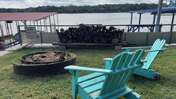 Chalet privé avec terrasse couverte surplombe le lac LBJ.
