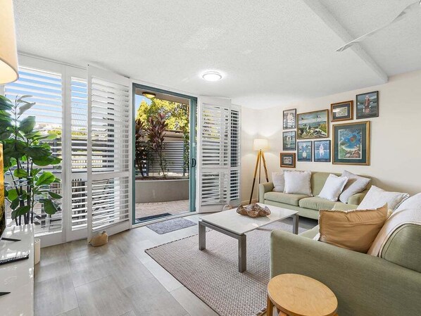 Toutes les chambres de l'hébergement Sea Shapes Coastal Escape 2 Bed Apartment sont dotées de touches de confort comme un système de réglage de la climatisation, ainsi que d'autres services et équipements, notamment une table à manger et l'accès Wi-Fi à Internet.