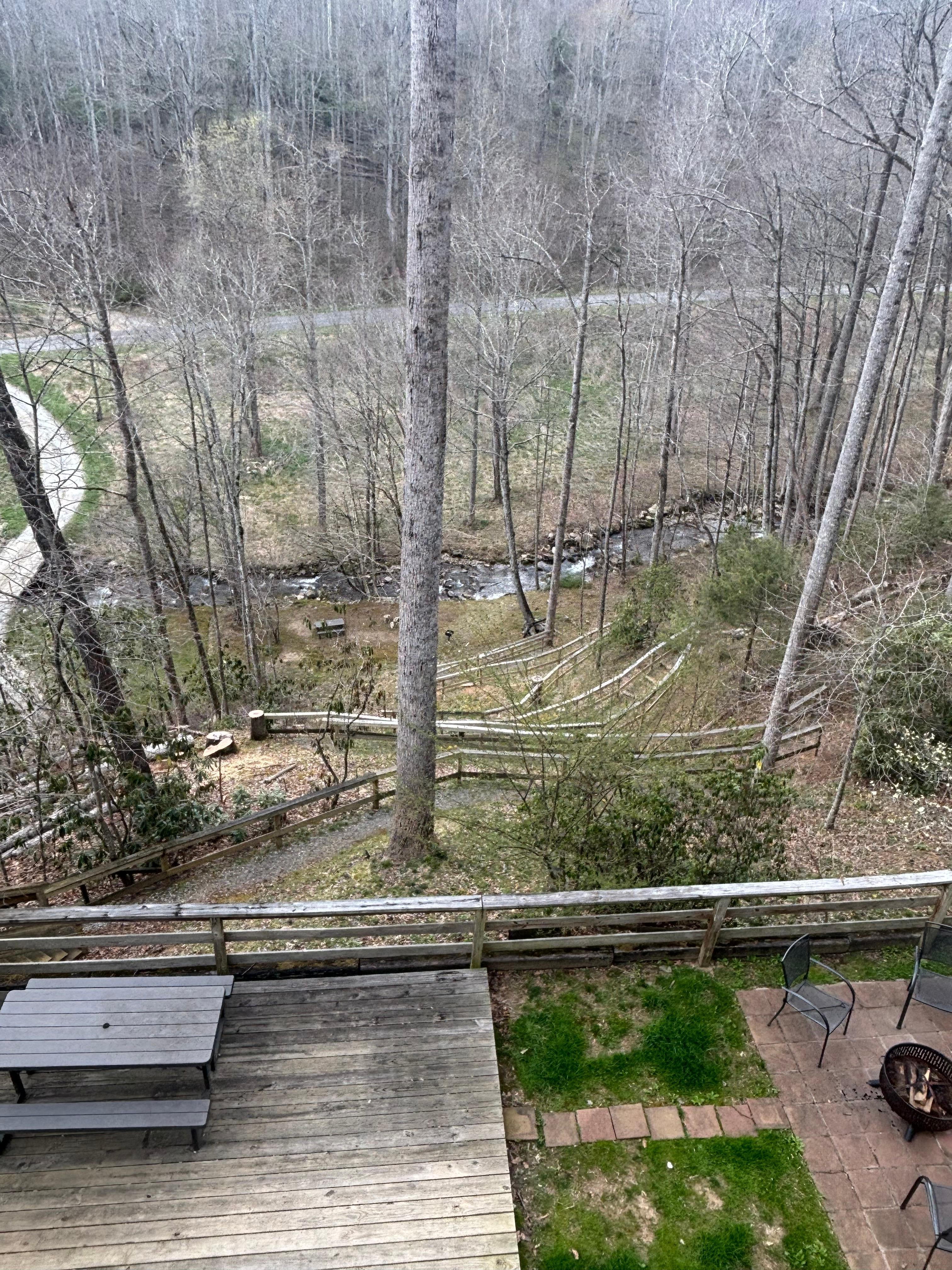 We had a lovely time at this cabin, where you could hear the running waters of the stream below, relax in the hot tub and listen to all kinds of different birds.