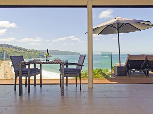 Cette maison de vacances à Tairua comprend un salon décloisonné bien aménagé, avec un flux intérieur / extérieur ... Détendez-vous à l'intérieur et admirez le paysage, ou installez-vous sur le pont pour dîner en plein air avec une vue imprenable sur l'océan. Tout ce dont vous avez besoin pour un séjour rafraîchissant est à portée de main.