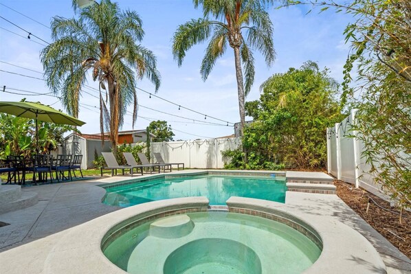 Welcome to Sunny Days! This beautifully updated 1960's Craftsman with a private heated pool (additional fee to heat pool) is just the place in Tampa you were looking for.