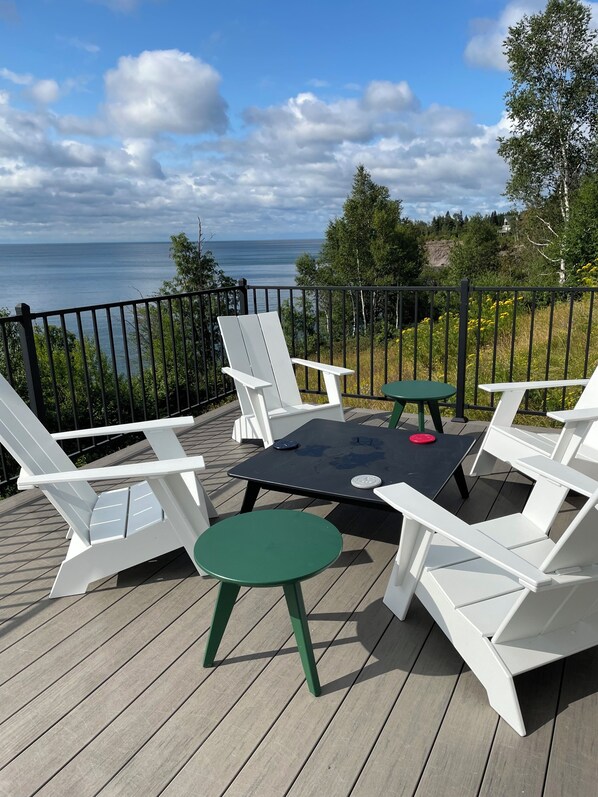 Après avoir profité de la beauté du Northland, reposez-vous dans notre maison exécutive de 3 500 pieds carrés. La maison comprend 4 chambres et 4 salles de bain. Chaque chambre a été conçue pour révéler une carte postale illustrant le lac Supérieur, en particulier la grande salle avec ses fenêtres de 14 pieds de haut et sa vue à 180 degrés. La chambre principale comprend un lit king-size, une salle de bains privative et une baignoire spa. L'appartement à l'étage comprend également un lit king-size, un futon et un canapé avec une salle de bains privative. L'étage principal comprend deux autres chambres avec lit queen et une salle de bain privée. Pour favoriser l'expérience de Northland, nous avons trié sur le volet toutes les estampes et images trouvées dans l'auberge révélant les endroits emblématiques de la Côte-Nord.