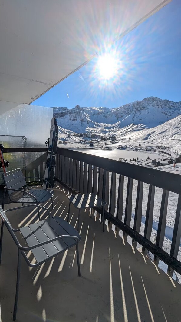 À 10m des pistes de ski, 2ème étage, vue montagne, balcon, télévision, casier à ski, 40m², Tignes