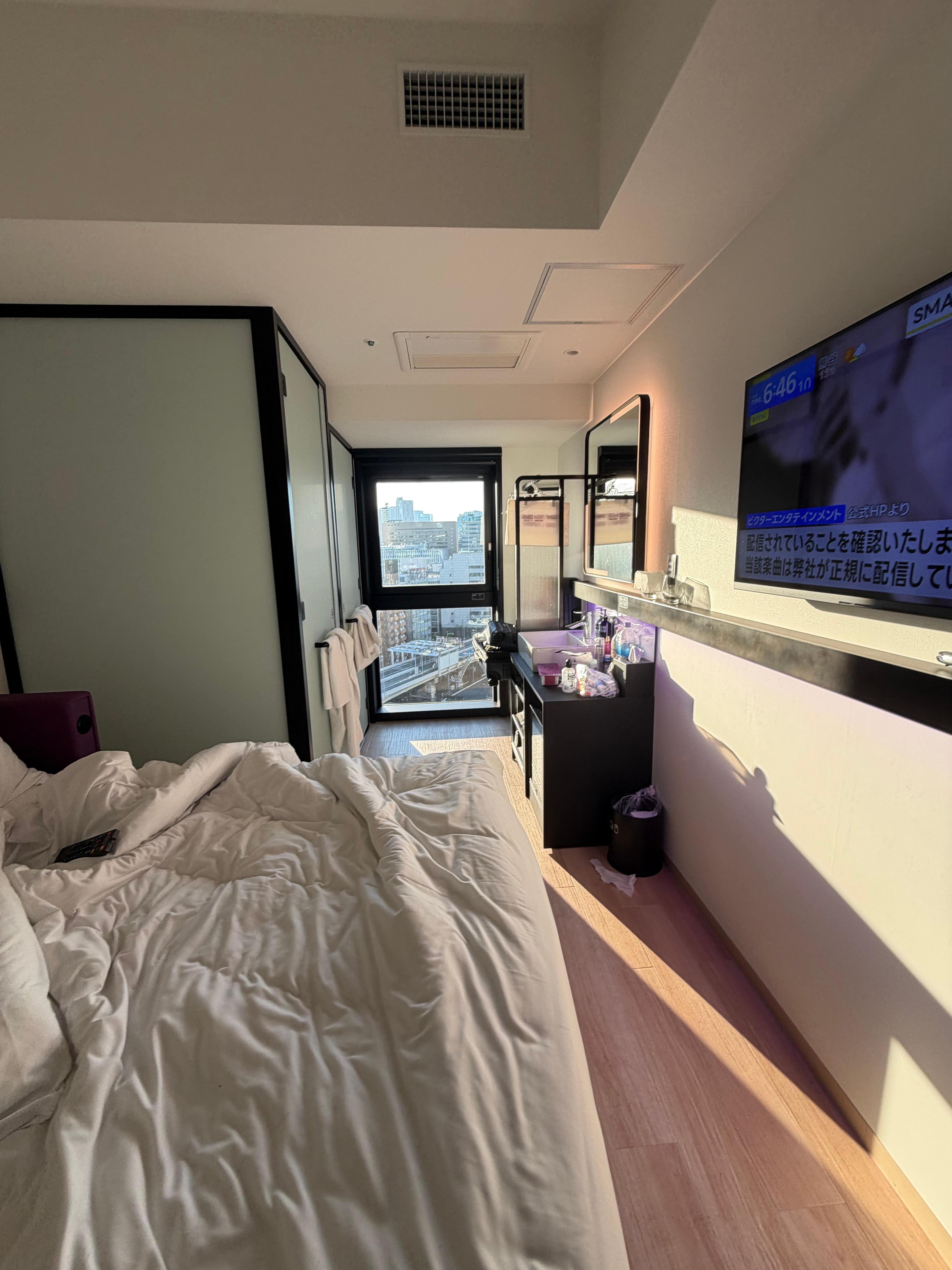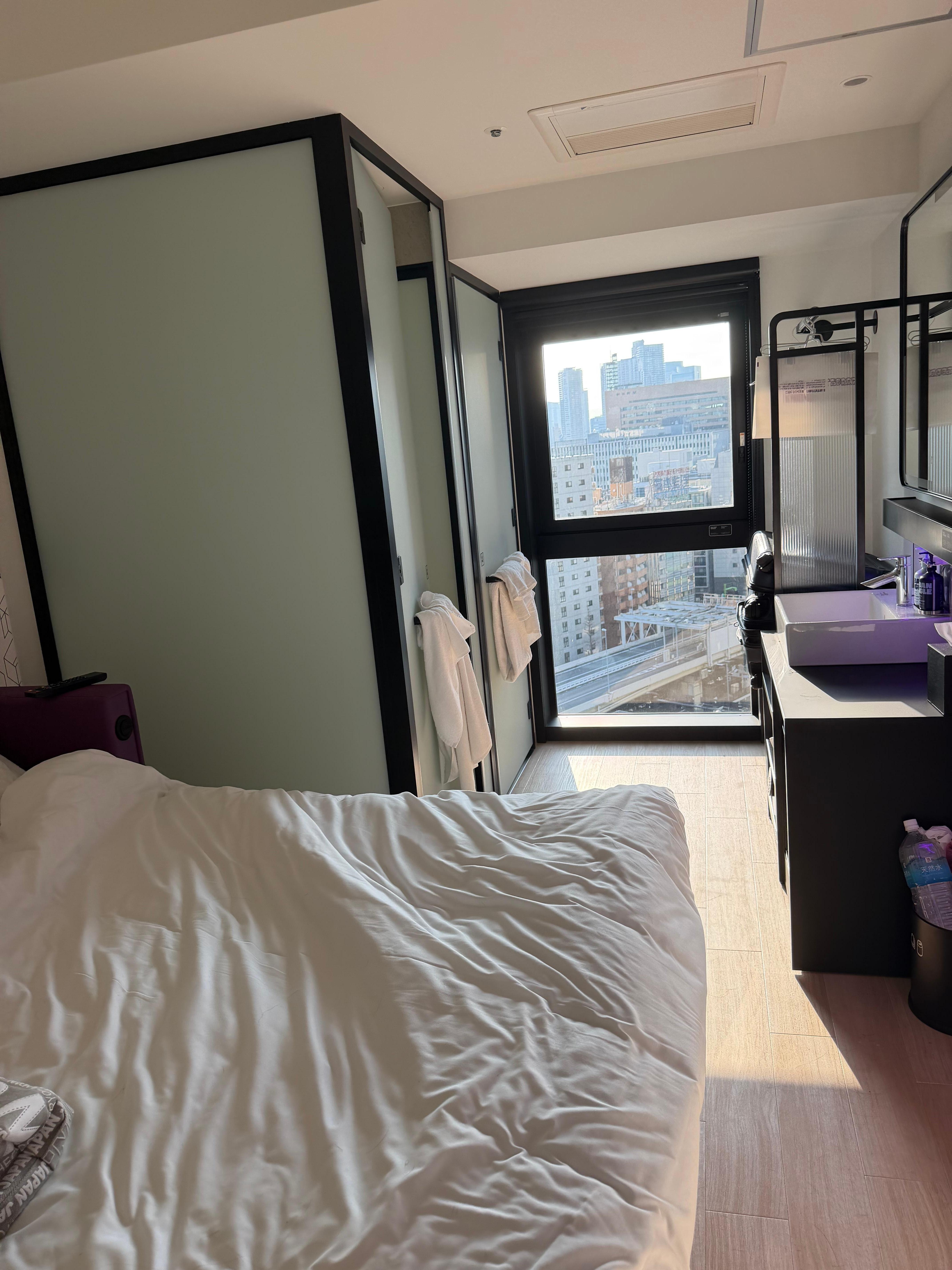Excellent location in Ginza. Staff is nice, hotel is clean. Room is a little small. 10steps from the door to the other end of the room. I didn’t like the layout since bathroom is not separate from bed. But for Japan, it’s same efficient use of space. Breakfast buffet is very nice too.