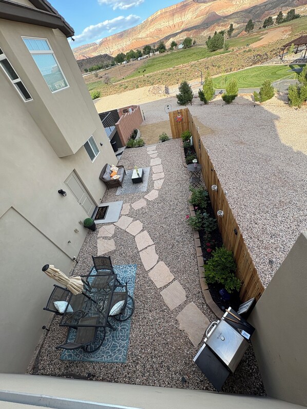 The views of the red mountains and Smiths Mesa just outside your front door are breathtaking. Sit back and settle in, in very own peaceful courtyard, with Seating for all.