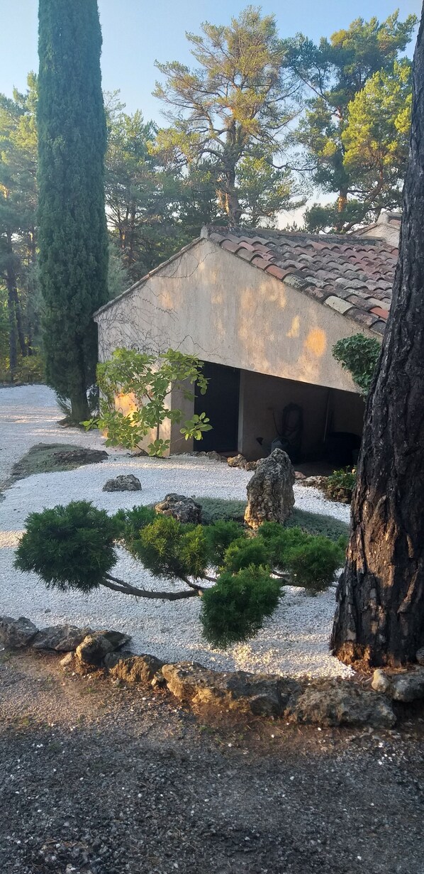 La Dringuelle est une charmante maison provençale située à 3km du village de Tourtour ("village dans le ciel", à 650m d’alt), elle est au cœur d’un domaine privé et sécurisé avec une magnifique piscine de 25m au bord d’un lac également privé et de 3 terrains de tennis neufs. La maison, complètement refaite il y a peu et très élégamment meublée, peut accueillir cinq adultes avec deux espaces nuits séparés (lits 140x90) avec 2 salles de bains. Un autre lit d’une personne se trouve dans la bibliothèque pouvant être privatisée. Un grand jardin avec plusieurs terrasses permet de prendre les divers repas et de se reposer au calme sous de majestueux arbres.