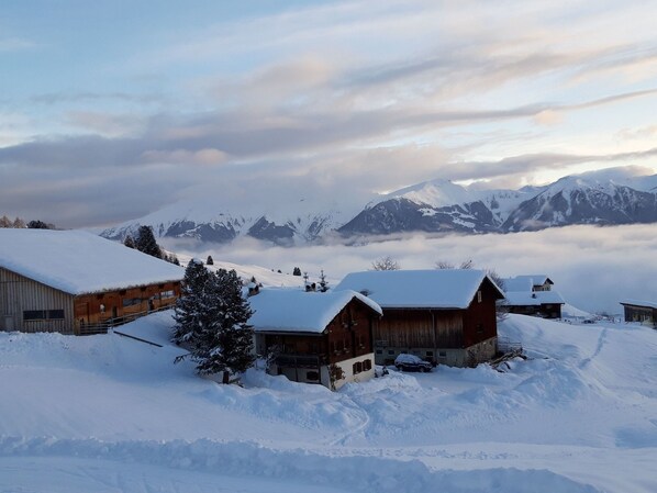 This cosy holiday flat on the farm in Tschappina, Graubünden, can accommodate up to 4 people and is located on the ground floor. The property has one bedroom and a bathroom with shower. Ideal for holidaymakers who are looking to be close to nature and enjoy active leisure activities, it is located just 50m from the nearest ski slope and mountain/cable car.