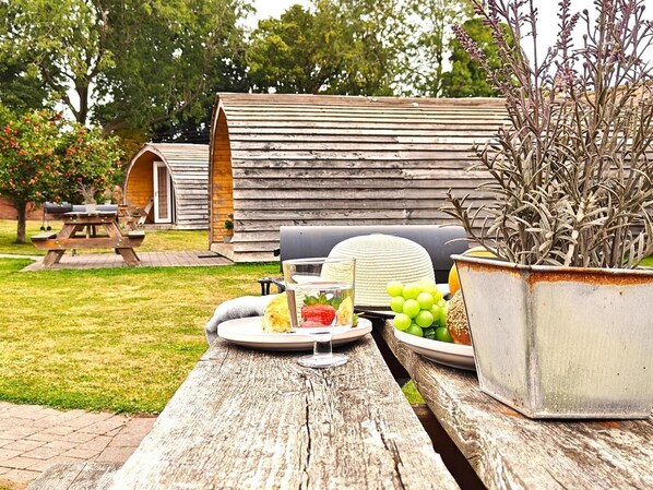From sunrise to sunset, the open front patio with outdoor dining furniture and BBQ is the perfect spot to soak up some fresh air and enjoy your stunning countryside setting. The shared undercover seating area, complete with pizza oven, is ideal for entertaining. The site also features an honesty shop selling a range of local produce and homemade items, as well as providing freezer storage for guests. Private parking is available on site for two cars, a short walk from the pod.