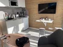 Vous pourrez accéder à Internet gratuitement par le biais d'une connexion sans fil. Une télévision connectée donne accès aux chaînes numériques.
