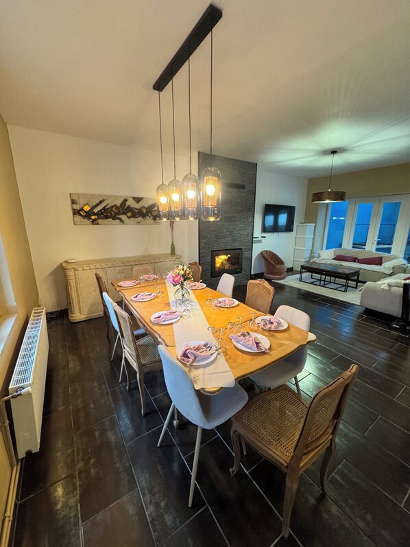 ✨ Description principale Offrez-vous un moment unique dans la maison LBfamily spacieuse et chaleureuse, idéale pour se retrouver en famille ou entre amis. Pensée pour accueillir jusqu’à 12 personnes, elle est parfaitement adaptée aux week-ends festifs, anniversaires ou événements, avec de beaux espaces pour partager des moments inoubliables. Que ce soit pour se ressourcer après le travail ou organiser un temps festif cette maison est au point! Profitez d’une grande pièce de vie conviviale, d’une véranda lumineuse ouverte sur le jardin, et d’un cadre propice à la détente. La maison est équipée de la fibre, idéale pour allier confort, télétravail et loisirs. 🛋️ Le logement La maison de 180 m² propose : • 5 chambres confortables avec lits doubles • 2 canapés convertibles • Une grande pièce de vie avec table pour 12 convives • Une cuisine équipée • Une véranda spacieuse de 40 m² • Une salle de bain avec douche À l’extérieur : • Jardin de 800 m² • Espace détente et repas • Barbecue à disposition 🎉 Une maison pensée pour vos événements Tout est prévu pour accueillir vos moments importants : • Linge de table fourni (nappes, serviettes en tissu) • Éléments de décoration à disposition • Grande capacité pour repas en groupe Vous pouvez organiser facilement un anniversaire, un week-end entre amis ou une réunion de famille, dans un cadre agréable et sans contrainte logistique. 🍽️ Service traiteur (option) Pour profiter pleinement de votre séjour, nous pouvons vous mettre en relation avec un traiteur local. Il est possible de faire livrer directement sur place vos repas, afin que vous n’ayez rien à gérer. 🌿 Étang privatif (accessible a partir du 1er mai). Un étang situé à environ 5 km du logement est accessible. Vous pourrez y profiter d’un cadre naturel agréable l'étang est poissonner et la pêche est autorisé, un barbecue est à disposition avec des tables et chaises, idéal pour partager un moment convivial en extérieur.