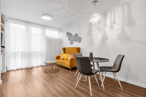Park Mirowski Yellow Studio is a stylishly furnished apartment with an amazing view from the 10th floor. It features a living room with a kitchenette, a separate sleeping area with a comfortable double bed, and a bathroom. Guests have various amenities at their disposal, including terrestrial television, a washing machine, an iron, a hairdryer, a dishwasher, a microwave, a Nespresso coffee machine, a refrigerator with a freezer, and kitchen accessories.