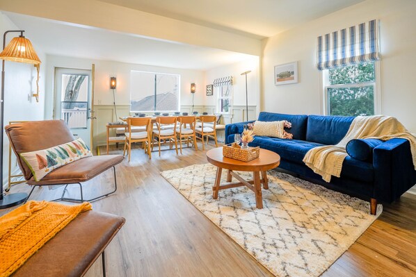 Relax with your whole family, including your beloved dog, in this newly remodeled 3 bed, 3 bath modern farmhouse-style cottage. Unwind by the firepit next to the lake and enjoy breathtaking views from every bedroom.