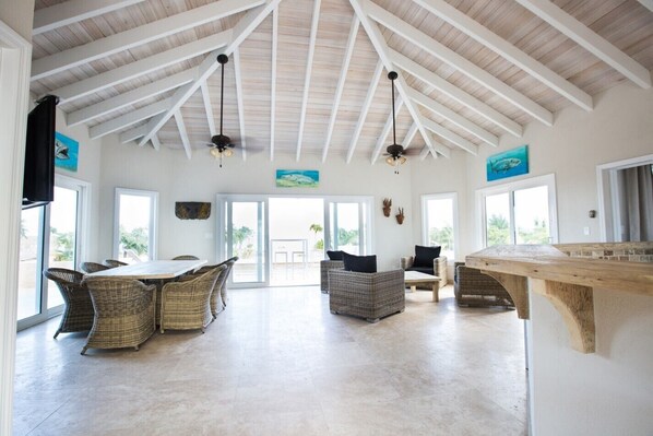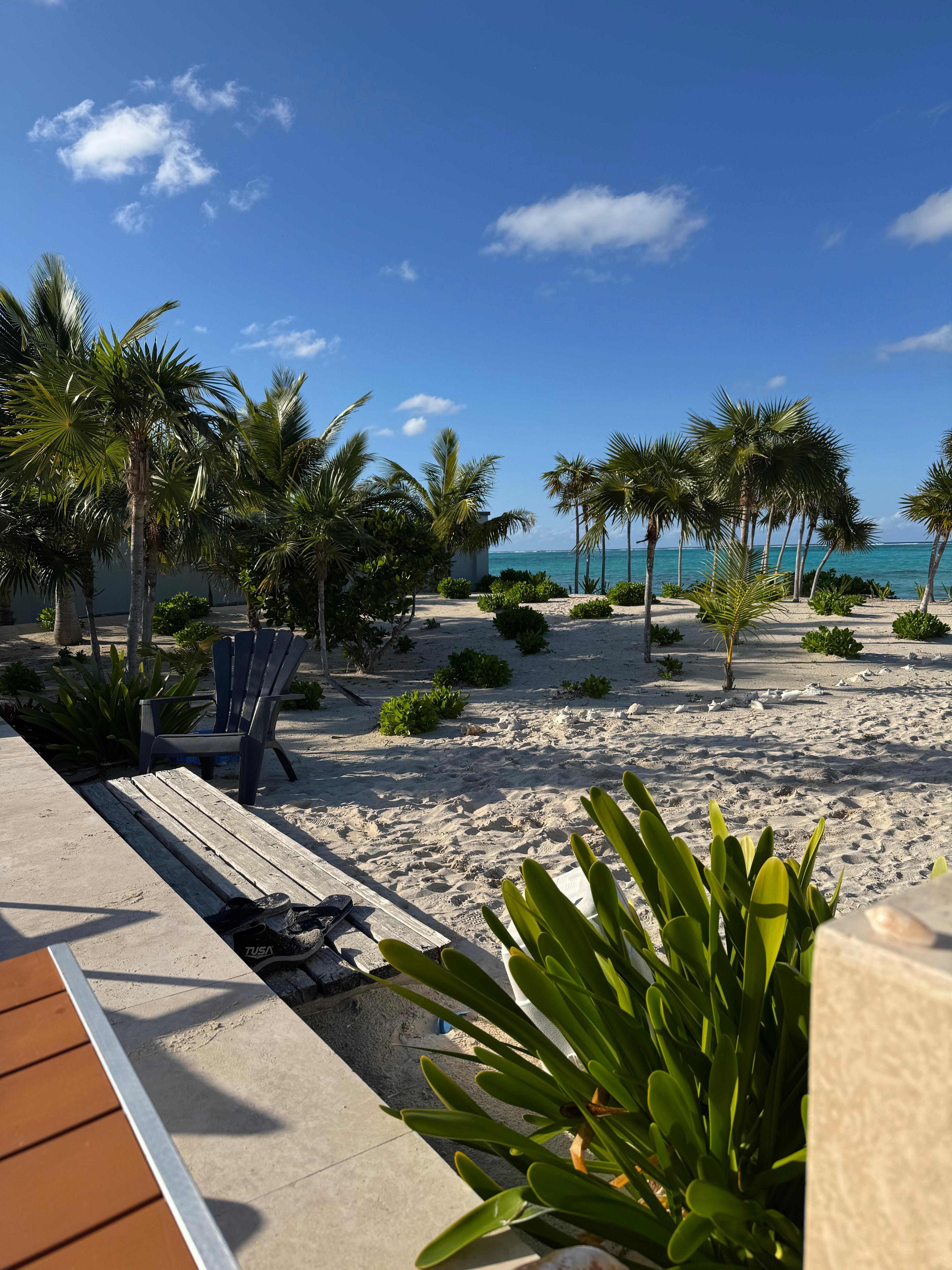 The beach in front of the villa has white sand with some natural rocks at the water’s edge. There is easy access into the water for fabulous snorkeling and swimming in the warm, crystal clear ocean. The reef is less than a mile out which is teeming with a myriad of sea life.