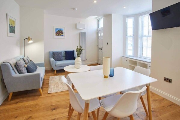 This bright ground floor apartment has been renovated to an extremely high standard creating a perfect space to enjoy a short stay by the coast. With a pale, neutral colour palette the apartment gives a real sense of calm.