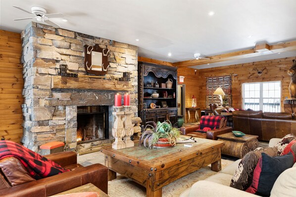 - Fully equipped kitchen - Large harvest dining table + round dining table - Multiple lounge areas with lake views - Three fireplaces - Piano - Pool table and shuffleboard - Board games - Dedicated workspace - Multi-stall washrooms