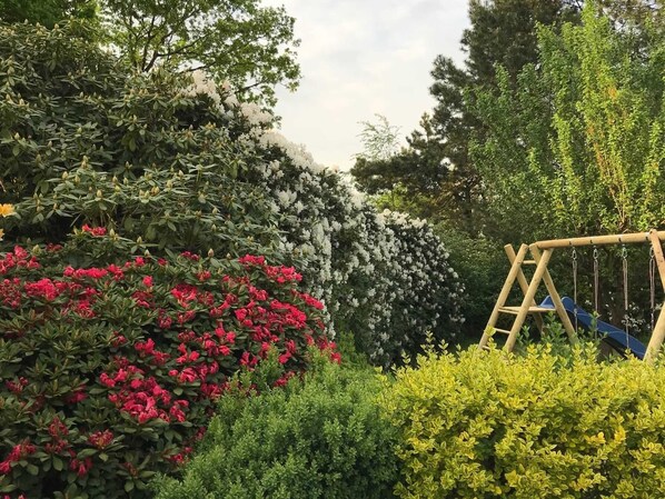 Geesthaus Dingsfelde Wiefelstede La ville de Wiefelstede avec ses magasins, ses restaurants et ses cafés n���est pas très éloignée. Profitez du paysage pittoresque de Geest, qui vous invite à marcher et à faire du vélo. environ 150 m², partiellement sans obstacles, le rez-de-chaussée est accessible aux fauteuils roulants. Une maison de vacances pouvant accueillir jusqu'à 8 personnes. Les installations comprennent: 2 télévisions à écran plat, système de musique, Internet sans fil, 2 salles de bain, 4 chambres à coucher, lave-vaisselle, lave-linge, sèche-linge, réfrigérateur-congélateur, grand jardin avec mobilier de jardin, garage, sélection de livres et de jeux, équipement de jeux dans le jardin, barbecue, paella Rez-de-chaussée: accès facile. Salons: canapés et fauteuils confortables, télévision couleur par satellite, chaîne hi-fi avec lecteur CD, W-LAN , Divers. Cuisine: entièrement équipée, lave-vaisselle, cuisinière électrique avec plaque vitrocéramique, four, micro-ondes, réfrigérateur, cafetière, grille-pain, réfrigérateur-congélateur dans la pièce de rangement. Coin repas: table avec 8 chaises chambre 1: 2 lits simples, salle de douche TV accessible aux personnes à mobilité réduite toilettes au premier étage: chambre 2: lit double chambre 3: 2 lits simples chambre 4: 2 lits simples salle de douche grand jardin avec balançoire, toboggan et bac à sable
