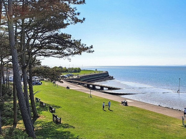 A fantastic location overlooking a park, and just a short walk to the town centre and promenade, with the beach and golf course also close by. Perfect!. 1 step to entrance.