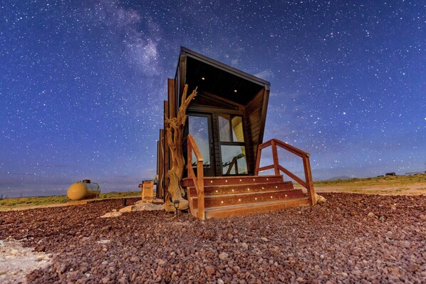 Escape to our Stargazing Off-Grid Tiny Home, a secluded oasis where you can experience the Grand Canyon`s natural beauty and mesmerizing night sky. Just a short 25-minute drive from the National Park, this eco-friendly tiny home offers modern comforts powered by sustainable energy, an outdoor deck for BBQing, and a stargazing experience like none other. Your adventure awaits under the stars.