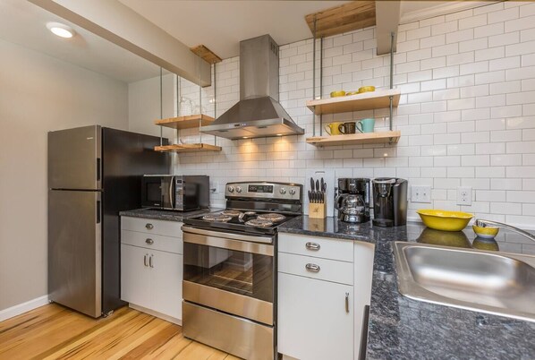 You will appreciate tasteful touches throughout the home that make this an extra special getaway- including hardwood floors and granite countertops. This home also has its own laundry room and bathroom, as well as a sofa bed that fits two comfortably. Everything you might need to feel comfortable are at your disposal, including fresh towels and sheets, cozy blankets, a sound machine, laundry detergent, and K-Cups.