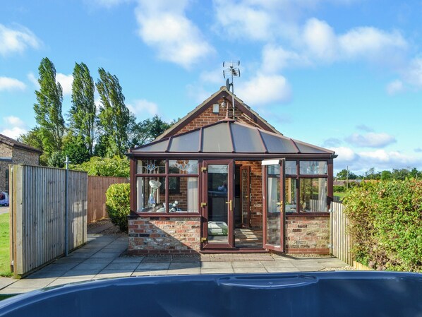 Step inside to discover a charming country-style kitchen, equipped with modern amenities and French doors lead from the kitchen into the conservatory, where the living room awaits, offering Smart TV and panoramic views of the surrounding countryside. For cosy evenings in, retreat to the snug room, complete with a TV, book library, and board games, providing entertainment during the winter months. The kingsize bedroom boasts a door onto a secluded patio with additional seating; great for an early morning coffee and also an en-suite bathroom, ensuring a comfortable and relaxing stay. Outside, unwind in the inviting hot tub under the starlit sky, or take a leisurely stroll through the nearby Strensall Common, a Site of Special Scientific Interest renowned for its birdwatching opportunities.
