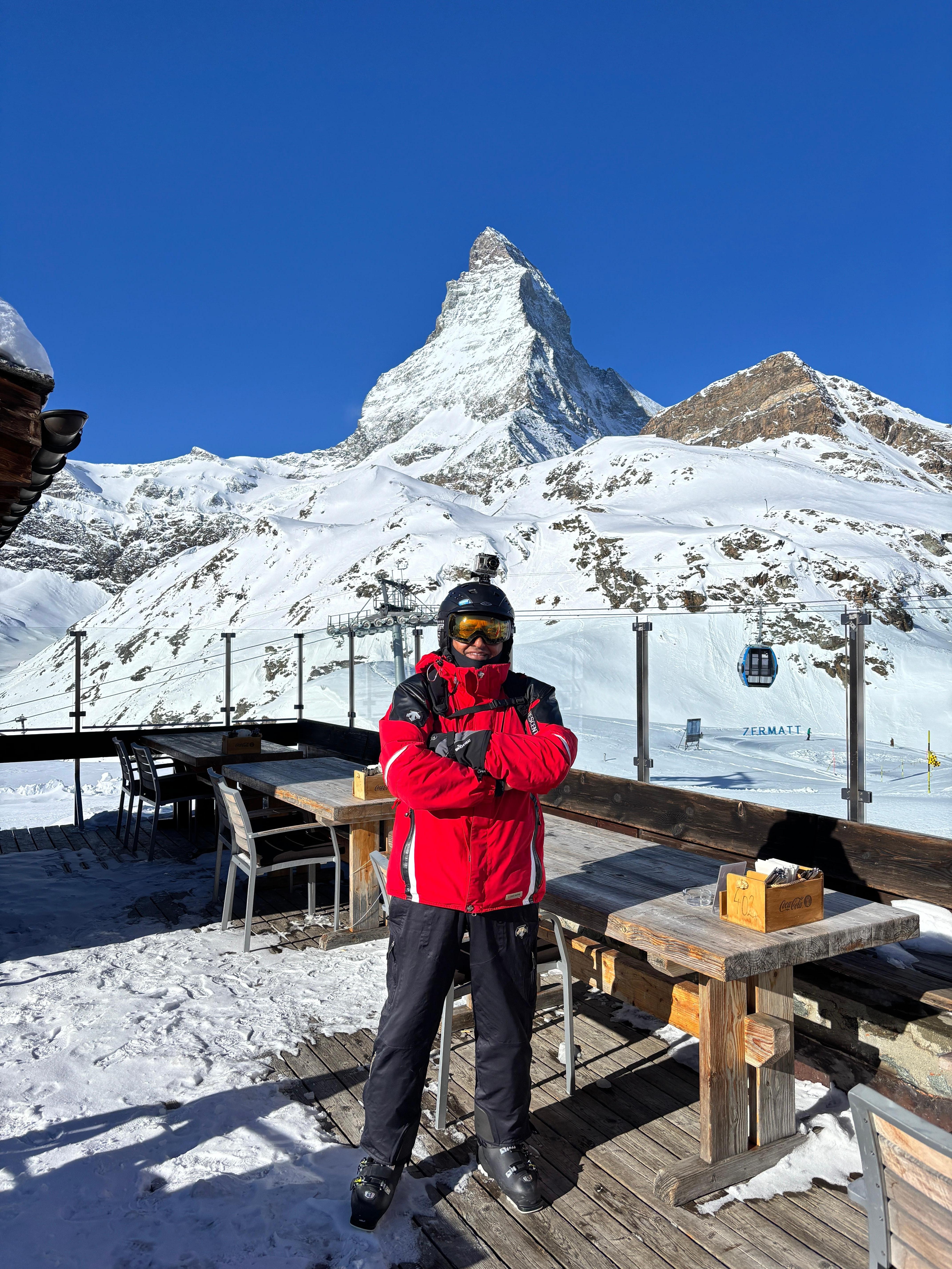 Sitting right under the Matterhorn, best location on Zermatt. Good food, relatively affordable. Highly recommend for the view.