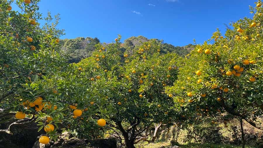 Les programmes de découverte du secteur primaire de Mie comprennent désormais la récolte d’amanatsu à Owase et de plaquemines du Rendaiji à Ise. À Owase, la culture d’amanatsu a décliné avec le vieillissement des agriculteurs et le manque de relève. L’agrume est devenu si rare qu’il a été appelé « fruit fantôme ». Heureusement, Koshin Kusaka a redonné vie aux vergers abandonnés grâce à la culture naturelle, laissant les fruits mûrir complètement sur l’arbre.