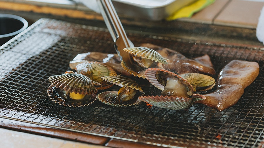 À Osatsucho, ville de Toba, la cabane ama « Hachiman Kamado » invite les visiteurs à savourer des menus variés, des spécialités locales pour 2 900 yens aux « Shinsen » sacrés pour 50 000 yens. C’est une manière unique de déguster des fruits de mer grillés par les amas, tout en vous laissant bercer par leurs histoires.