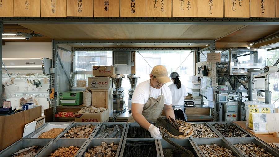Fondée en 1912 près du sanctuaire d’Ise Jingu, la boutique Sakatoku Kombu spécialisée dans le kombu met à l’honneur la culture « kinari », qui valorise la qualité des ingrédients.