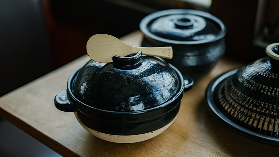 Le yaki d’Iga est une poterie fabriquée avec l’argile grossière d’Iga, riche en fossiles microbiens. En cuisant, les fossiles brûlent, laissant apparaître des pores dans la poterie. La chaleur emmagasinée dans les pores d’une pièce de poterie d’Iga cuit les ingrédients à cœur, révélant toute leur saveur umami.