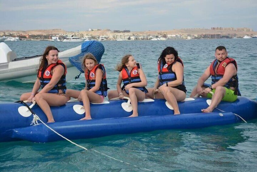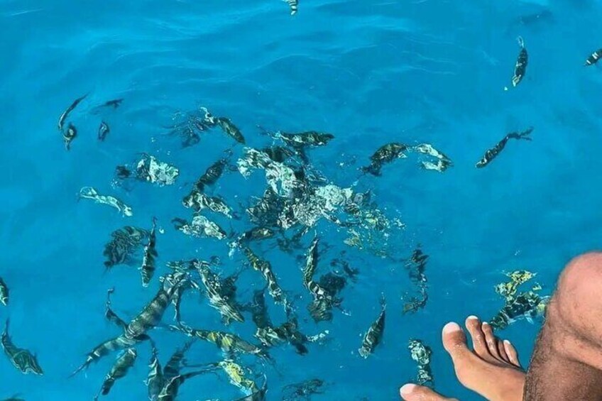 En plus de l'exclusivité, les clients peuvent profiter d'un mini-massage apaisant à bord, ce qui rend cette visite non seulement sur l'aventure mais aussi une profonde détente. Un délicieux buffet de fruits de mer, des boissons gazeuses à volonté et des activités nautiques palpitantes garantissent qu'il y en a pour tous les goûts. Avec des guides professionnels, un équipement de plongée de qualité supérieure et une atmosphère en petit groupe, cette excursion garantit une expérience personnalisée, sans stress et inoubliable sur la mer Rouge, pas comme les autres.