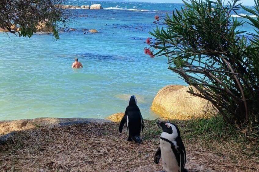 Ce qui rend cette visite unique, c'est qu'elle est une excursion privée qui peut être personnalisée à votre guise. Cependant, nos suggestions sont les suivantes : Départ tôt le matin pour profiter de la meilleure lumière matinale pour cette visite touristique de la péninsule du Cap jusqu'à la réserve naturelle de Cape Point. L'itinéraire circulaire allant du Cap jusqu'à la réserve naturelle de Cape Point et retour fait environ 180 kilomètres. Vous voyagerez tout au long de la route côtière de la péninsule connue sous le nom de côte atlantique avec ses plages de sable blanc scintillant. En milieu de matinée, nous atteindrons la réserve naturelle du Cap de Bonne-Espérance et la pointe de la péninsule du Cap. Vous aurez suffisamment de temps pour marcher jusqu'au vieux phare. Nous irons également à la pointe la plus au sud-ouest de l'Afrique ; lieu de rencontre mythique des océans Atlantique et Indien ; le Cap de Bonne-Espérance. Sur le chemin du retour au Cap, nous longerons la côte est de la péninsule. Notre dernière visite de la journée est la colonie de manchots africains de la plage de Boulders et le jardin botanique de Kirstenbosch.