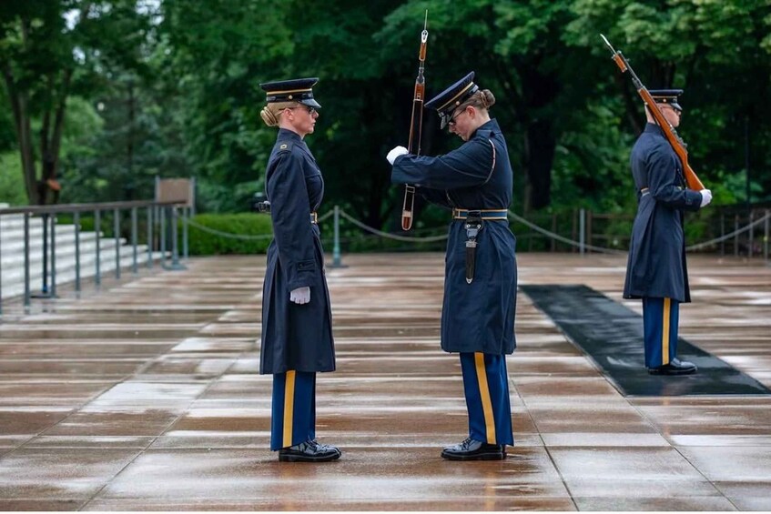 Relève de la garde sur la tombe du soldat inconnu : Assistez à la précision impressionnante de cette cérémonie emblématique, un hommage traditionnel aux héros américains tombés au champ d'honneur. La tombe rend hommage aux soldats non identifiés des principales guerres américaines, symbolisant le sacrifice de tous ceux qui ont servi.
