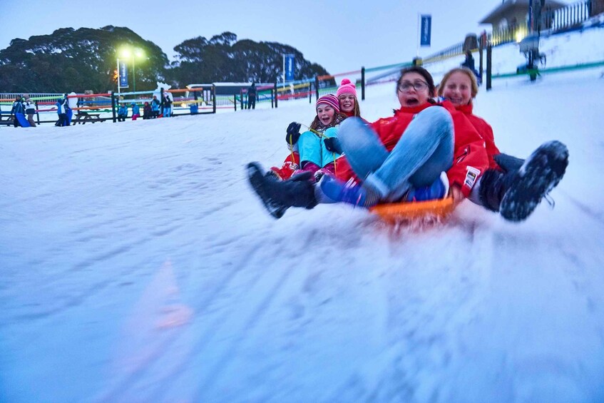 Voyagez en autocar de première classe jusqu'au Mont Buller en passant par Donnybrook et le haut pays pour profiter des vues spectaculaires sur les montagnes et les paysages enneigés. Après votre arrivée au centre du village de Mt Buller (pas de navette avec nous) vers 10 heures, vous disposerez de plusieurs heures de temps libre dans la neige pour vous adonner à l'activité de votre choix et pour explorer la région. Enjoy free time exploring the alpine village on your own.
