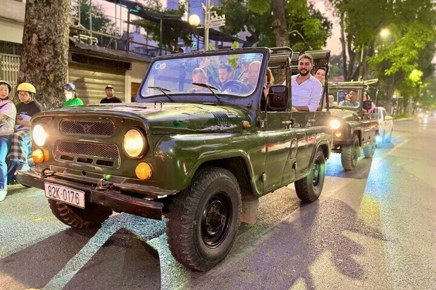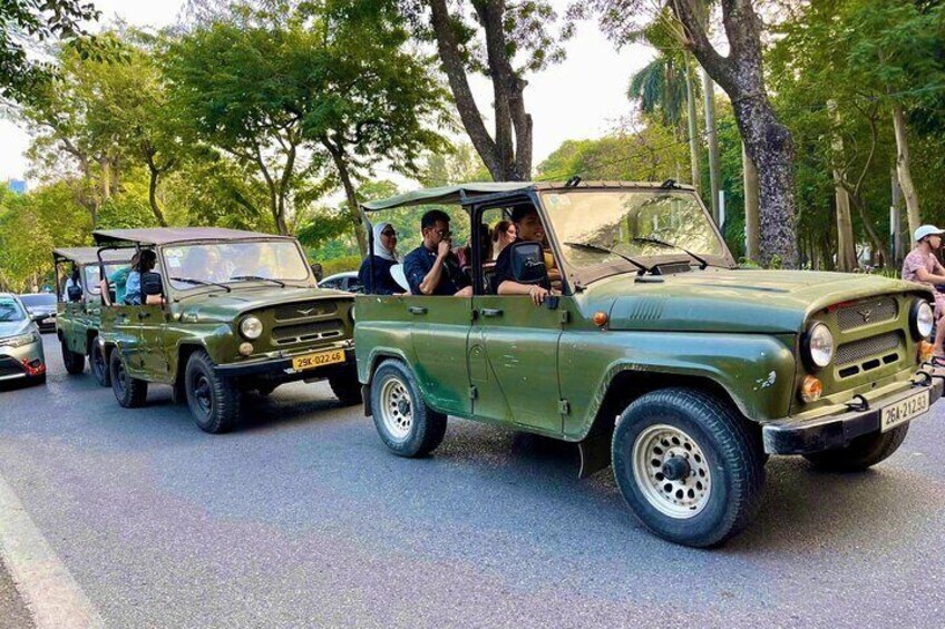 Continuez votre expédition pendant que la jeep légendaire vous guide vers les monuments et les trésors cachés de Hanoï. Passage par le majestueux mausolée de Ho Chi Minh jusqu'au serein temple de la littérature. Naviguez dans les rues animées du quartier de Reunification Railway Street, où l'architecture française se marie parfaitement avec les marchés locaux animés.