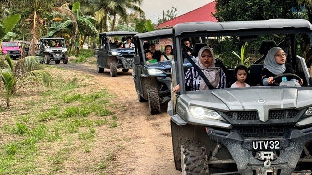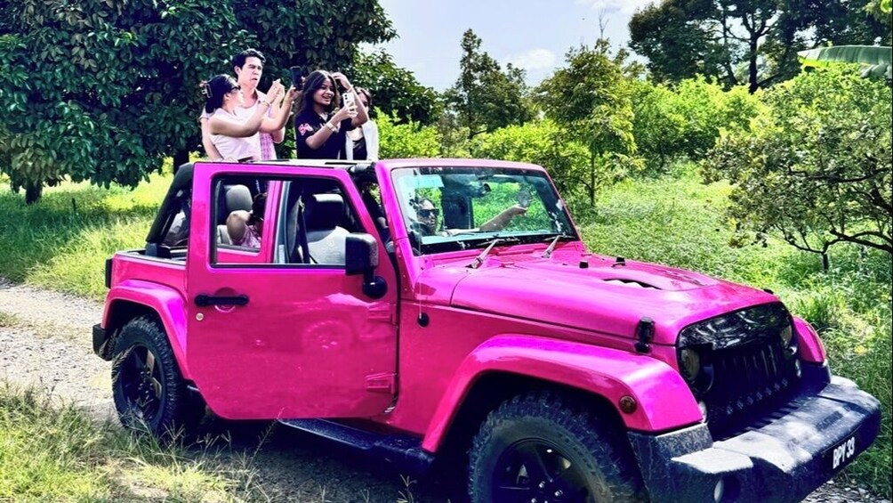 - Préparez-vous à une montée d'adrénaline d'une heure à travers les paysages luxuriants de la ferme fruitière de Desaru ! Notre jeep wrangler ou UTV à ciel ouvert vous emmènera hors des sentiers battus à travers des plantations tropicales, des pistes boueuses et des chemins pittoresques, offrant une aventure à la fois palpitante et sûre aux amoureux de la nature et aux amateurs de sensations fortes. Parfait pour les familles, les couples ou les explorateurs solitaires !