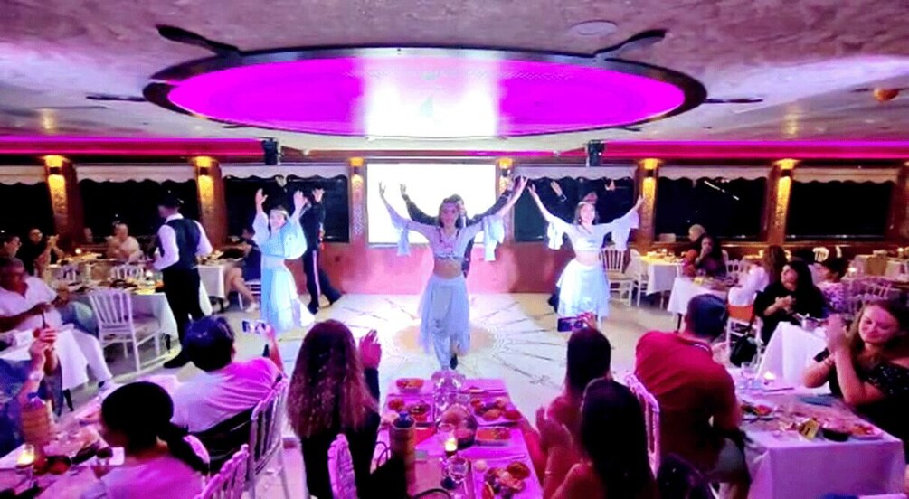 Cette option comprend un menu de dîner Vip et des boissons non alcoolisées à volonté à une table privée en avant-scène dans le salon Vip sur le Bosphore. La prise en charge et le retour à l'hôtel sont inclus. Les boissons alcoolisées ne sont pas incluses mais peuvent être commandées moyennant un supplément.