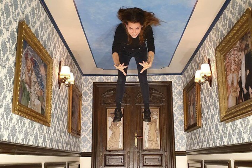 Essayez une chaise ou une chambre magique qui vous transformera en nain ou en géant. Laissez-vous tirer du canon par un magicien ou faites-vous léviter dans l’air. Votre tête se retrouvera soudainement sur la table ou le King Kong se régalera de vous. L’alchimiste célèbre Edward Kelly vous emprisonnera par le sortilège dans son laboratoire médiéval et un dinosaure vous emportera dans ses griffes dans son aire. Laissez-vous surprendre par quoi vous amusera sûrement Charlie Chaplin ou Albert Einstein. Vous verrez le vrai sourire de la Joconde et ce n’est pas celui que vous connaissez du tableau. Vous vous promènerez la tête en bas sur le plafond de la pièce, vous vous changerez en danseuse étoile, vous verrez votre image réelle dans un miroir, vous deviendrez l’homme le plus beau du monde et vous viverez beaucoup d’autres. La magie des temps anciens soufflera sur vous et vous découvrirez d’intéressants secrets des illusions d’optique.