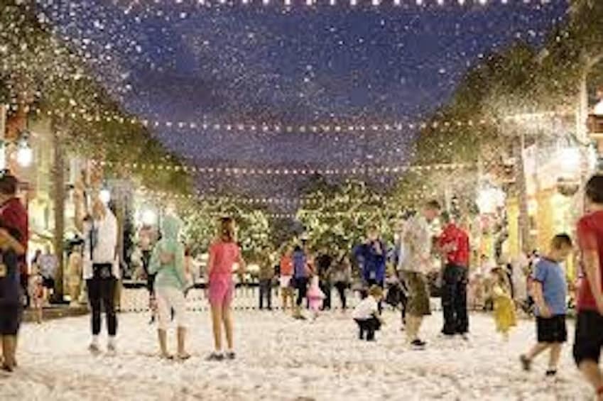 Admirez des maisons en pain d'épices aussi grandes que la vie, découvrez des sculptures sur glace plus folles que votre imagination et regardez la neige tomber en Floride !