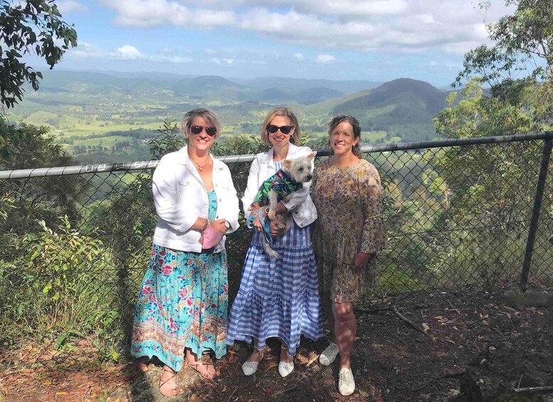Un trajet à travers le village de Maleny et un retour le long de la ligne de crête nous mèneront à notre dernière étape, où vous pourrez réfléchir à cette journée étonnante en participant à une dégustation de vin au sommet de la montagne, avec vue sur l'océan, dans la cave et le vignoble préférés de la population locale.
