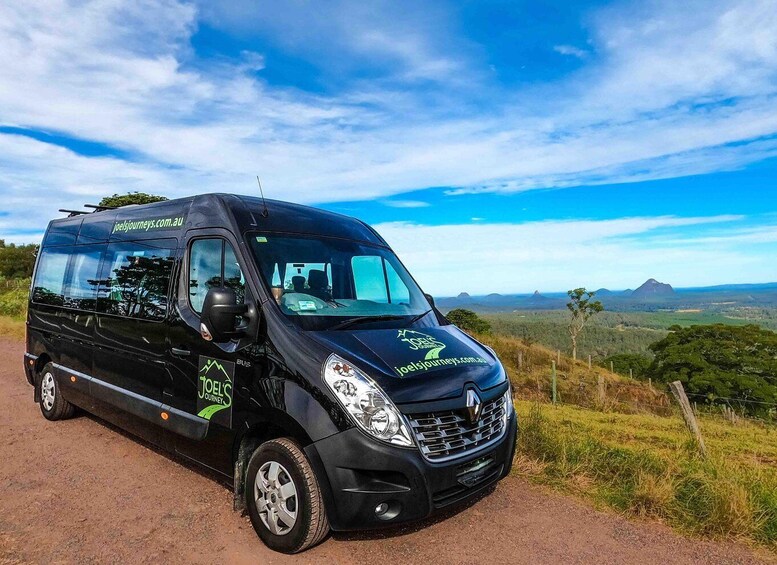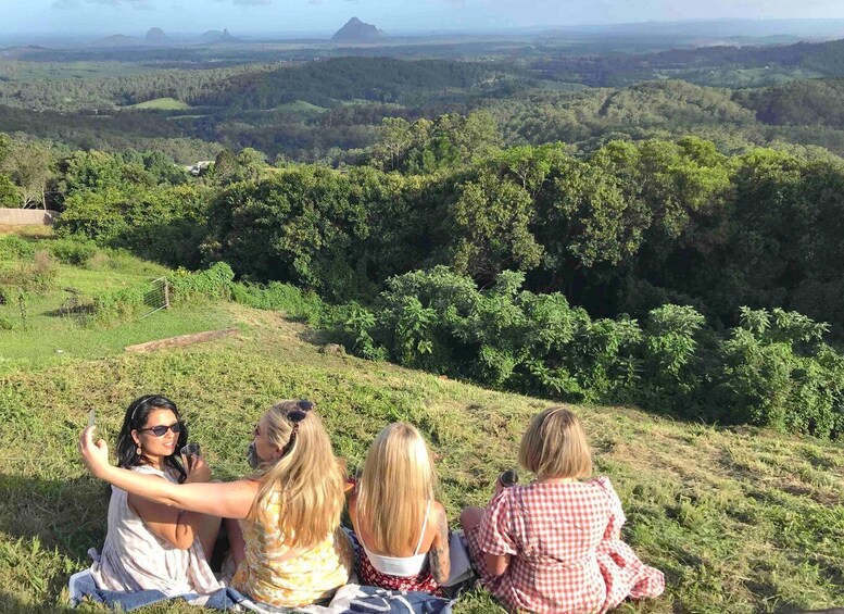 Ensuite, un trajet sur la ligne de crête nous mènera à un belvédère panoramique offrant une vue sur toute la côte de Sunshine Coast, de Noosa à Caloundra et jusqu'à l'île de Moreton par temps clair.