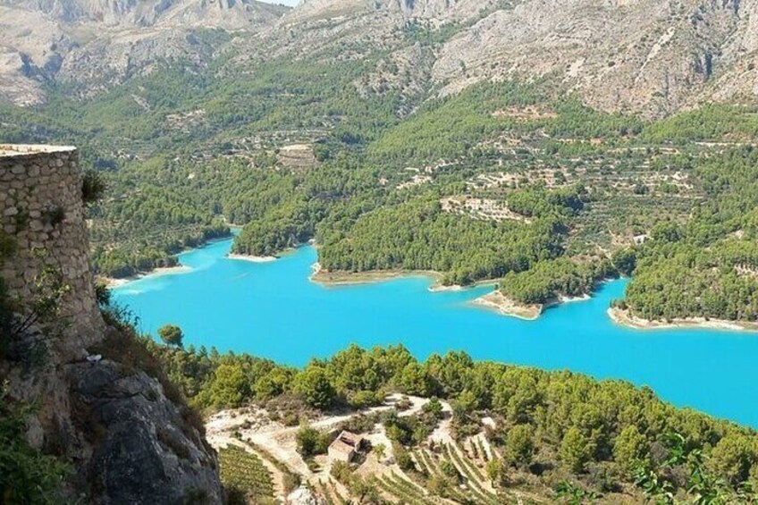 Découvrez l'une des plus belles villes médiévales d'Espagne avec le château de Guadalest. Profitez de la vue imprenable sur la montagne et le lac envoûtant d'une douce couleur turquoise