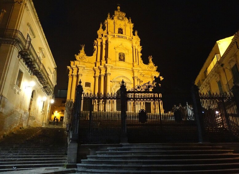 Le excursion continue à se promener dans le centre historique où nous visiterons d'élégants palais de l'extérieur avec des balcons soutenus par des masques typiques de style baroque, des boutiques de céramiques siciliennes, des boutiques d'artisans où les célèbres charrettes siciliennes sont encore fabriquées jusqu'au célèbre Cercle de conversation, appelé aussi Caffè dei Cavalieri, un élégant bâtiment néoclassique voulu au dix-neuvième siècle par les nobles de Raguse comme un point de rencontre exclusif. De l'extérieur, vous pouvez voir de précieuses fresques, des lustres au plafond et des miroirs qui nous ramènent à l'atmosphère du XIXe siècle. Dans la rue principale menant à la cathédrale se trouve également la belle église de S. Giuseppe, avec une façade similaire à celle de la cathédrale, de style baroque, et un beau sol en majolique colorée à l'intérieur.