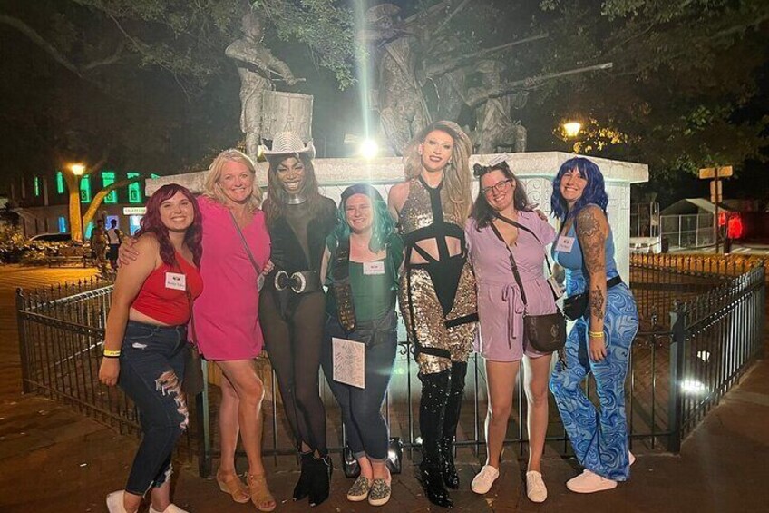 Plongez dans un monde où le glamour rencontre l'impertinent alors que vous vous embarquez dans ce fabuleux voyage époustouflant. Rejoignez notre illustre guide drag queen et préparez-vous à sashay, shante à travers les lieux de vie nocturne les plus chauds de Savannah. C'est un tourbillon de rires, de danse et de chansons qui vous laissera bouche bée !